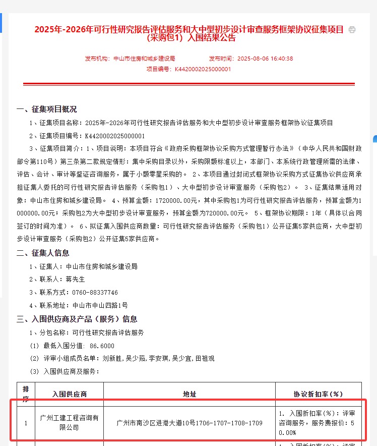 公司近期中标江門市江海區财政局江門高新技術産業開發區、江海區政府投資建設項目工程造價評審服務(2025年-2027年)框架協議征集項目